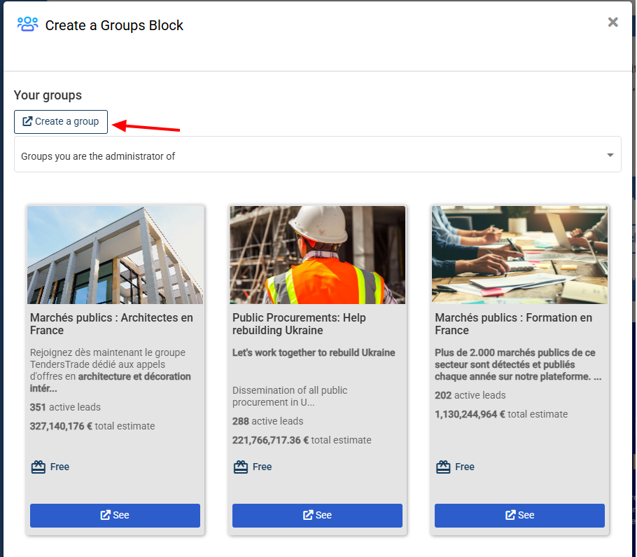 Le bloc Groupes affiche les groupes que vous avez créés ou auxquels vous participez. C’est aussi un outil d’animation de contenu à valeur ajoutée ou un levier de monétisation.
